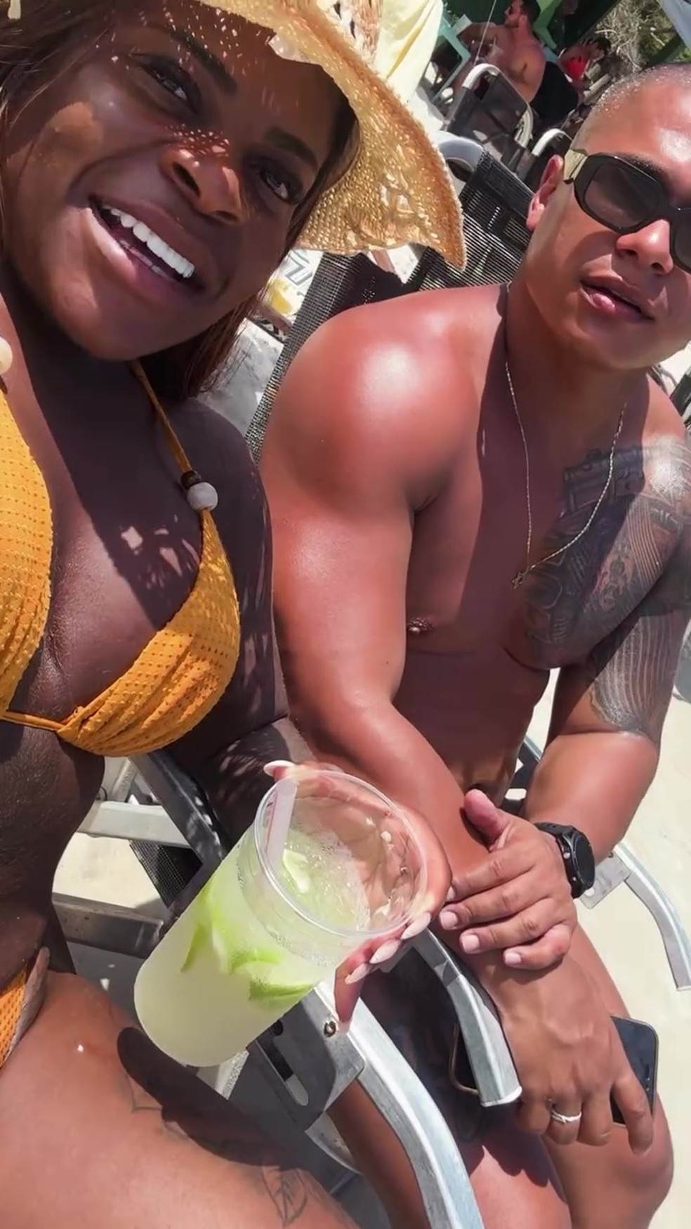 Jojo, que já perdeu mais de 80 quilos após se submeter a uma cirurgia bariátrica, apostou em um biquíni amarelo ao lado do amado, que mostrou suas tatuagens ao lado da namorada.