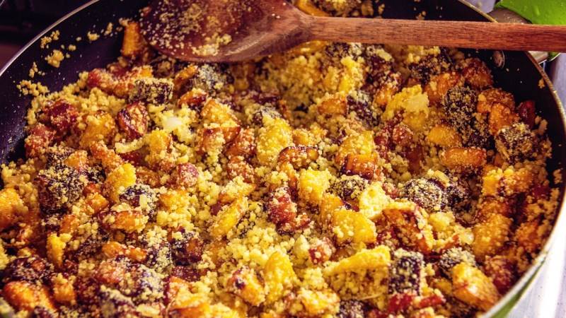 Tem dias que tudo o que a gente quer é uma comidinha com gosto de abraço. A farofa de banana-da-terra com calabresa faz isso com a gente, sabe? Simples, incrivelmente saborosa e com aquele toque de aconchego que quem já experimentou sabe do que tô falando.