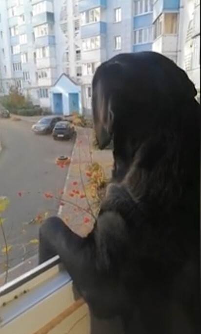 A cena foi gravada pela advogada Viktoriya Belostotskaya, de 33 anos, no dia 22 de outubro, que só queria registrar seu animal de estimação na janela de pé nas patas traseiras.