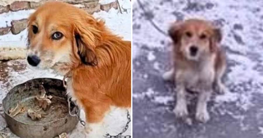 Da janela do carro, uma mulher notou algo que a fez reduzir a velocidade e olhar de novo. Lá, no frio cortante, um filhote pequeno estava acorrentado do lado de fora, exposto à chuva gelada que virava gelo antes mesmo de tocar o chão. O corpinho minúsculo do cachorro tremia, uma testemunha silenciosa da crueldade daquela situação.