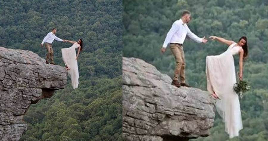 O que era para ser um momento de amor e celebração acabou se tornando um episódio de tensão e risco extremo. Um casal de noivos, em busca da foto perfeita para eternizar o dia especial, decidiu realizar um ensaio fotográfico na beira de um penhasco, e o resultado deixou internautas em choque.