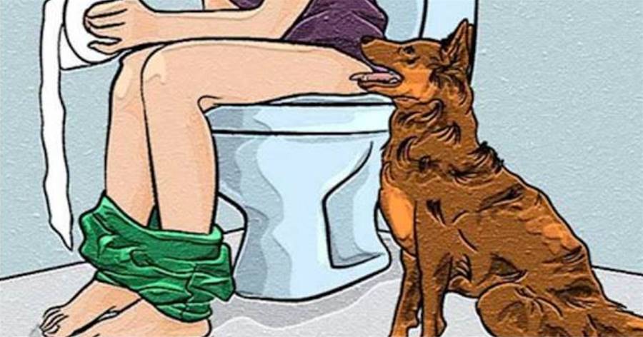 Quem já passou por isso sabe que não há pedidos ou broncas o bastante para fazer com que o seu cão desista do seu objetivo, que é te acompanhar, mesmo naquele momento de sua maior privacidade.