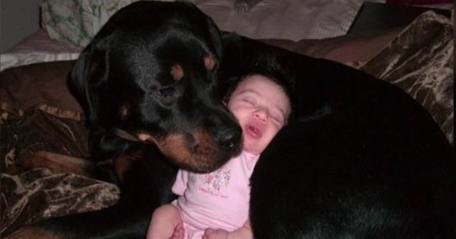 Essa história comovente surpreendeu a população do Uruguai, um cachorro da raça Rottweiler cuidou de um bebê recém-nascido por uma noite inteira e salvou sua vida.