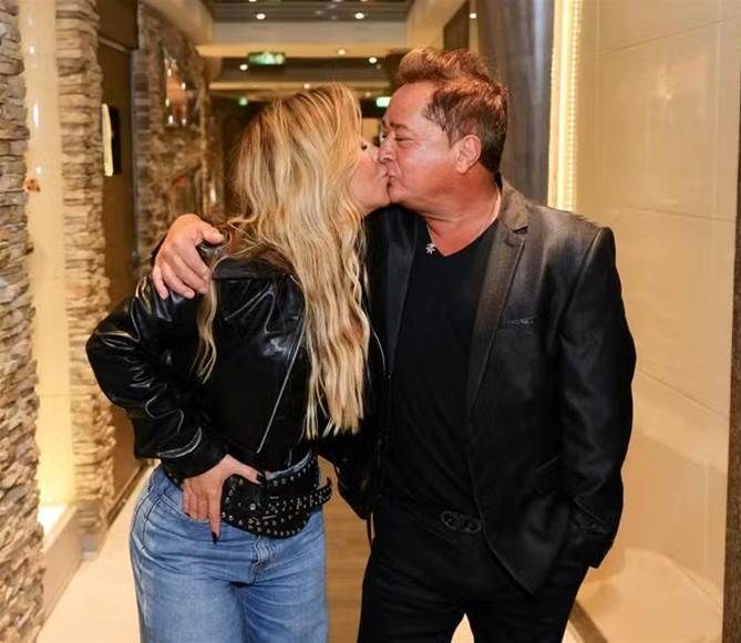Poliana Rocha, de 49 anos de idade, e Leonardo, de 62 anos, protagonizaram cenas românticas na madrugada desta sexta-feira (21), que marca o último dia da temporada do Navio Cabaré. O casal não economizou nos beijos e posou para os fotógrafos.