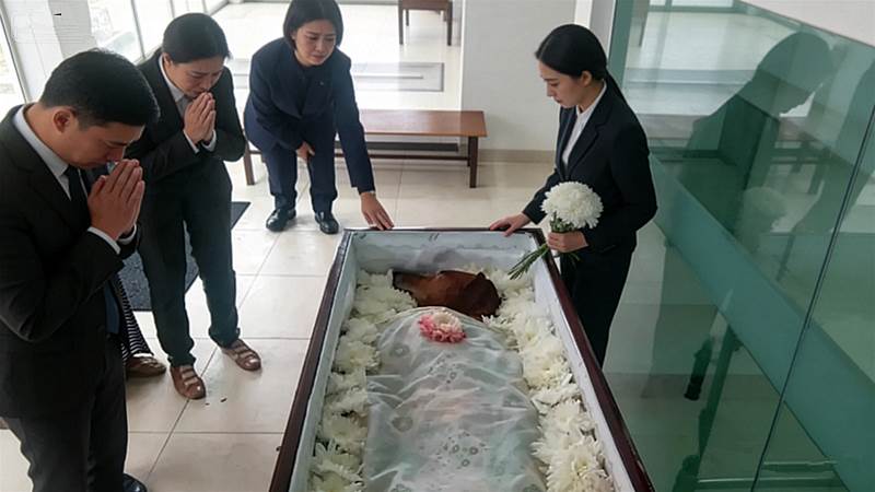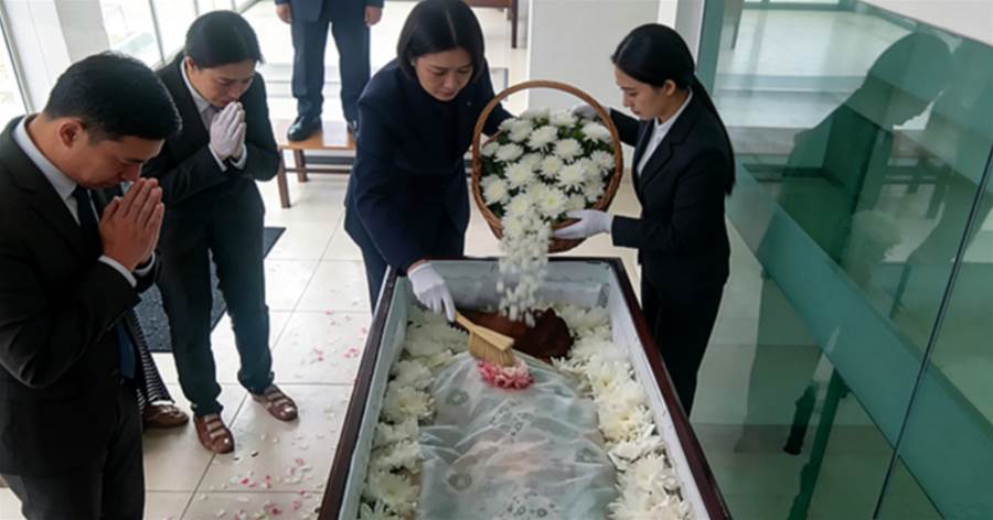 O animal, envolto em um lençol branco e cercado por flores, foi colocado em um pequeno caixão enquanto os tutores, visivelmente emocionados, prestavam suas últimas homenagens. Para eles, aquele momento não era apenas uma despedida, mas a celebração de anos de lealdade e companheirismo.