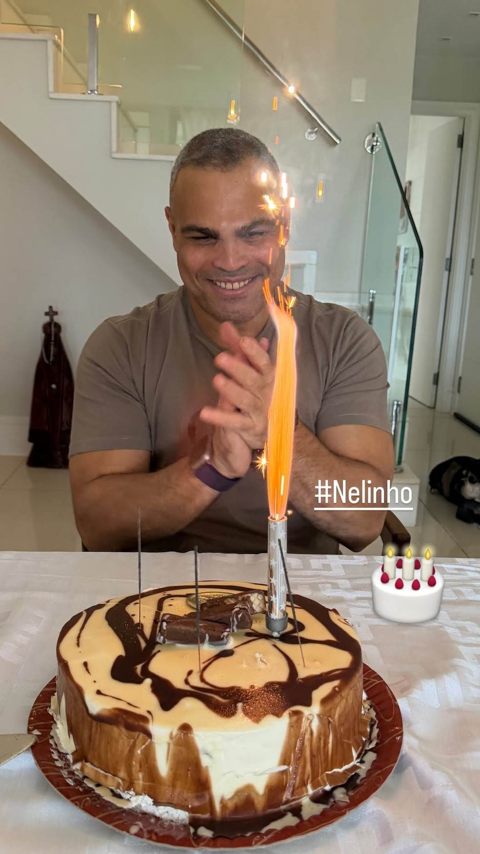 De cadeira de rodas, Nélio apareceu acompanhado da esposa, Roberta, e posou ao lado dos filhos e demais familiares durante a celebração. A reunião reuniu parentes próximos de Ronaldo e teve clima intimista.