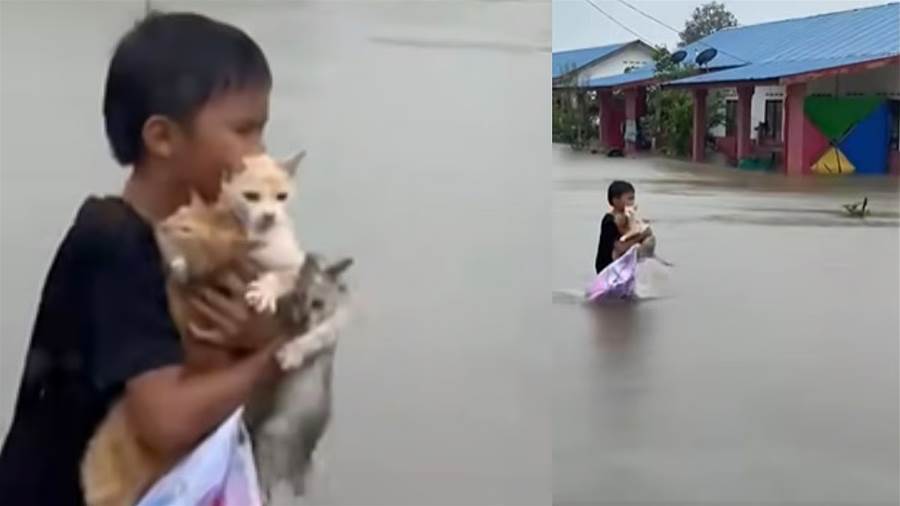 Em um cenário de destruição e caos provocado pelas enchentes devastadoras que atingiram a Malásia, uma imagem de esperança e coragem comoveu o mundo. Entre as águas barrentas, repletas de detritos e perigos escondidos, um menino foi flagrado enfrentando as adversidades – não para resgatar bens materiais valiosos, alimentos ou roupas, mas para salvar o que considerava mais precioso: três filhotes de gato, os últimos membros da família que lhe restara.
