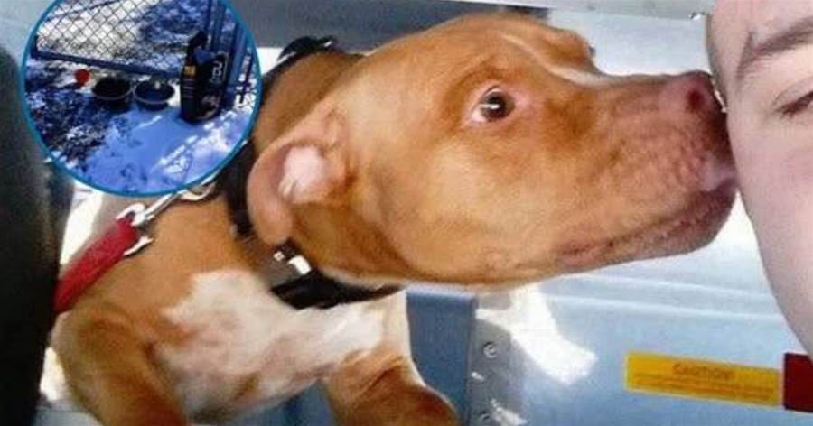 Em um dia gélido em New Jersey, nos Estados Unidos, as ruas e calçadas estavam cobertas de gelo e neve, e a sensação térmica chegava a impressionantes -13ºC. Em meio a esse frio extremo, um pit bull foi encontrado preso nas grades de um abrigo de animais, sozinho, com um brinquedo, um pacote de ração e dois potes – sendo que a água estava congelada.