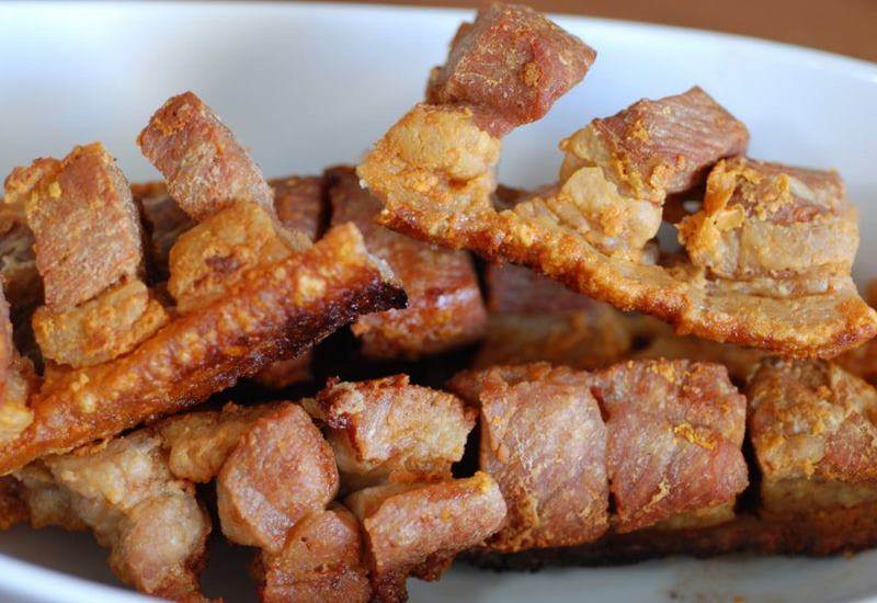 Fazer um torresmo perfeito parece simples, mas exige técnica e paciência. O segredo começa na escolha da carne — a barriga de porco com a pele é a mais indicada, pois garante a combinação ideal de gordura e textura. Ela deve ser cortada em cubos médios, lavada e bem seca com papel toalha, já que qualquer umidade atrapalha o processo de pururucar.